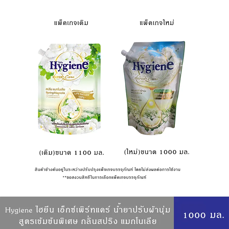 6.Hygiene ไฮยีน เอ็กซ์เพิร์ท แคร์ กลิ่นสปริง แมกโนเลีย น้ำยาปรับผ้านุ่มสูตรเข้มข้นพิเศษ 1100มล. ครั้งแรกของผลิตภัณฑ์น้ำยาปรับผ้านุ่มสูตรเข้มข้นพิเศษ กลิ่น สปริง แมกโนเลียความหอมเข้มข้นจากทุ่งดอกสปริง แมกโนเลีย