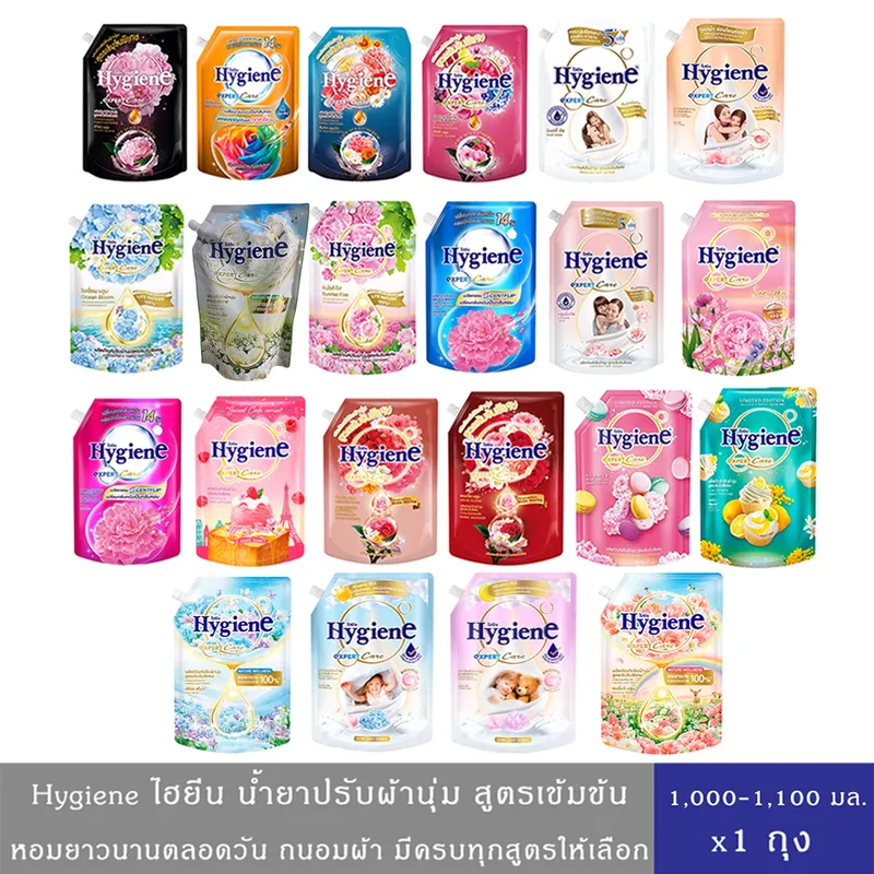 (มีให้เลือกถึง 20 สูตร)Hygiene Expert Care ไฮยีน เอ็กซ์เพิร์ทแคร์ น้ำยาปรับผ้านุ่ม สูตรเข้มข้นพิเศษ 1,000มล.-1,100มล.x1 ถุง