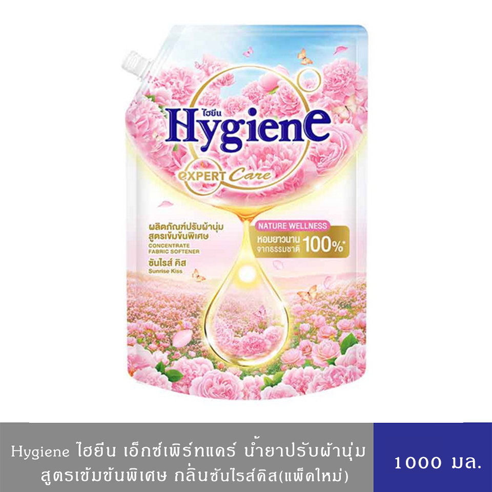 7.Hygiene ไฮยีน เอ็กซ์เพิร์ท แคร์ กลิ่นซันไรส์ คิส น้ำยาปรับผ้านุ่มสูตรเข้มข้นพิเศษ 1000มล. กลิ่น ซันไรส์ คิส ความหอมเข้มข้นจากทุ่งราชินีดอกไม้เลื่องชื่ ดอกดามัส โรส แรกแย้ม ผสานกับกลิ่นแดดแรกยามเช้า