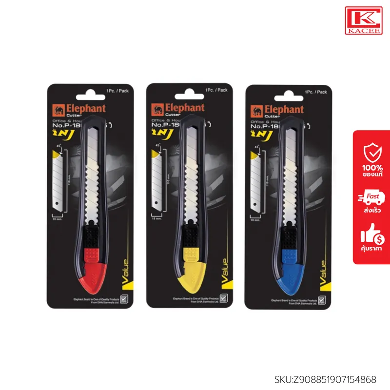 Elephant ตราช้าง คัตเตอร์รุ่น P-1801A 18 มม. คละสี คัตเตอร์ มีดคัตเตอร์ ใบมีดคม คม ทนทาน แข็งแรง ตัดอะไรก็ง่าย