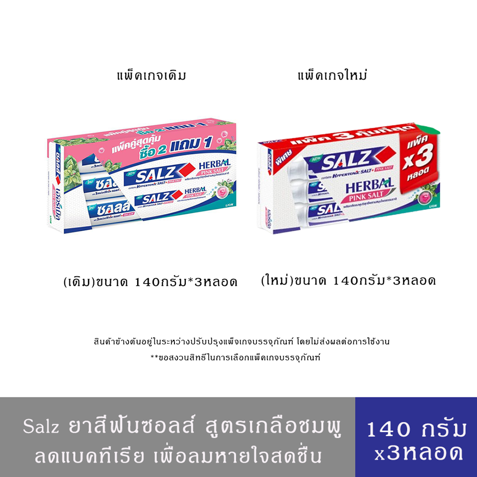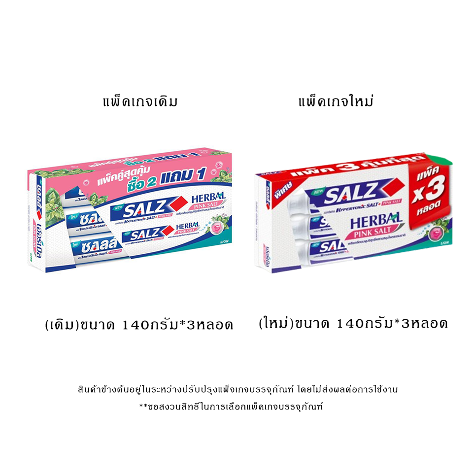 ยาสีฟันซอลส์ สูตรเกลือชมพู เฮอร์เบิ้ล พิงค์ซอลท์ แพ็คคู่2+1 หลอด Salz Herbal Pink Salt 140g.*3 pcs.