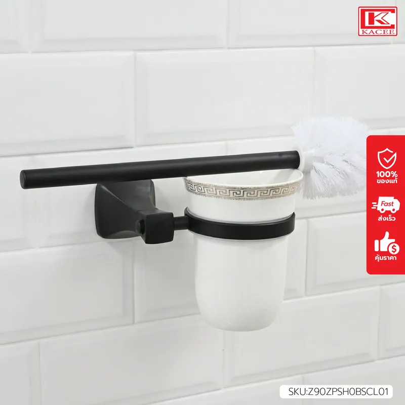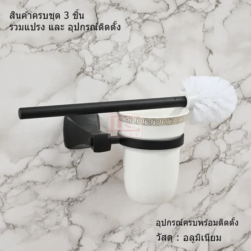 แปรงขัดห้องน้ำครบชุดสีดำ (ที่วางพร้อมแปรง)