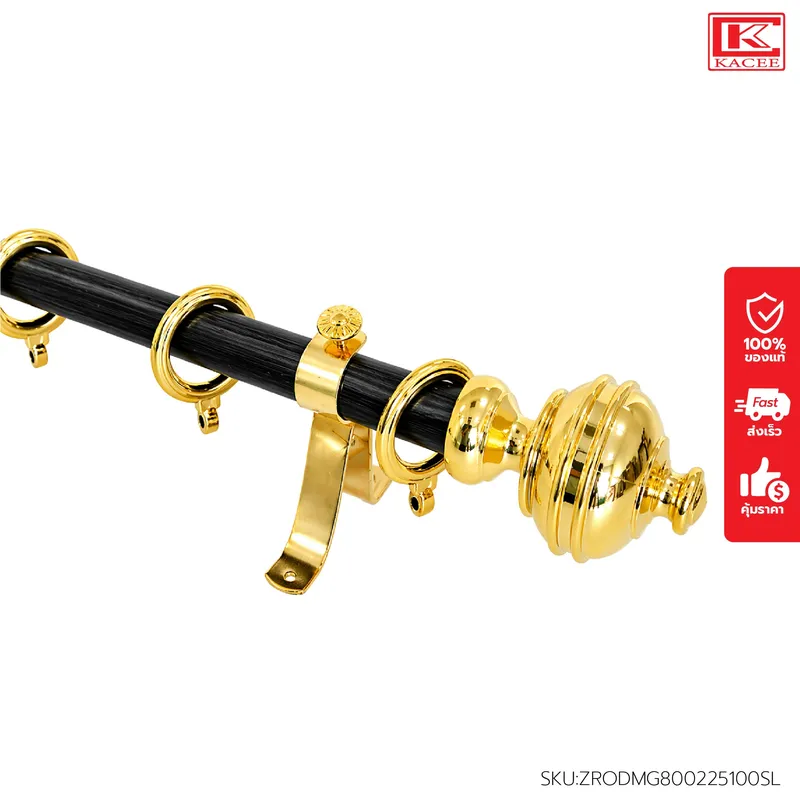 2.ขนาดกว้าง 1.10 เมตร (ขนาดไม่รวมส่วนหัวราง) อุปกรณ์ประกอบด้วย:ราง 1.10 เมตร 1 เส้น, หัวท้าย(พลาสติก) 1 คู่, สไลด์ 1 คู่, ขายึดราวม่าน 2 อัน, ห่วง(พลาสติก) 12 อัน