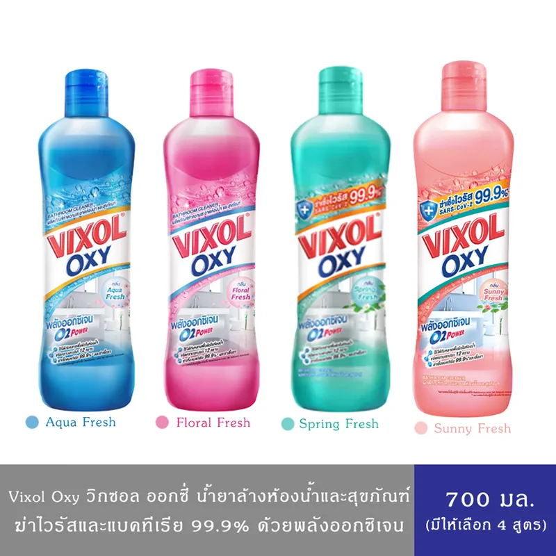 (มีให้เลือก 4 สูตร)Vixol Oxy วิกซอล ออกซี่ น้ำยาล้างห้องน้ำและสุขภัณฑ์ อควาเฟรช,ฟลอรัลเฟรช,สปริงเฟรช,ซันนี่เฟรช 700 มล.