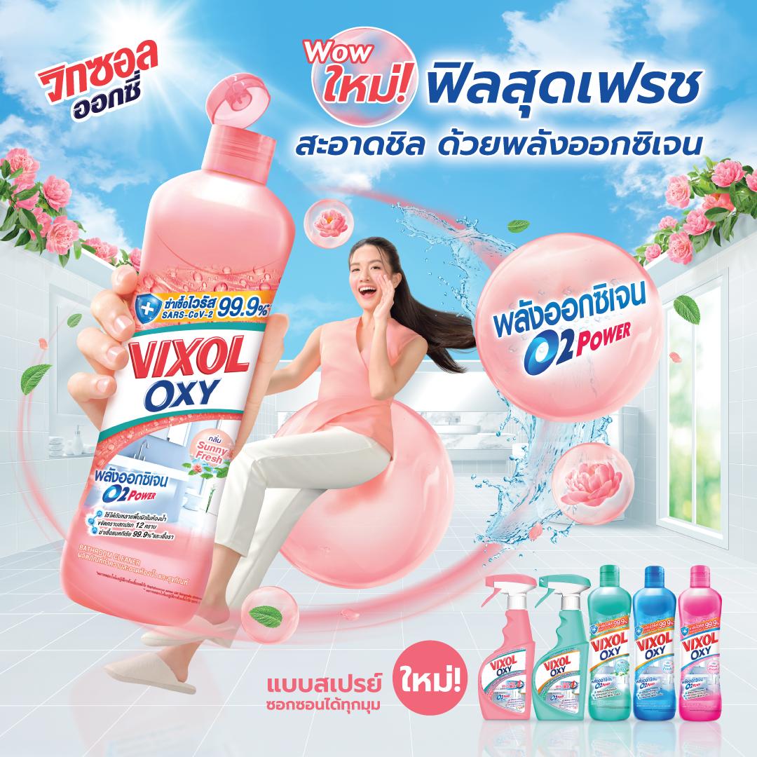 วิกซอล ออกซี่ ผลิตภัณฑ์ทำความสะอาดห้องน้ำและสุขภัณฑ์ ด้วยพลังออกซิเจน O2 Power ใช้ได้กับหลายพื้นผิวในห้องน้ำ