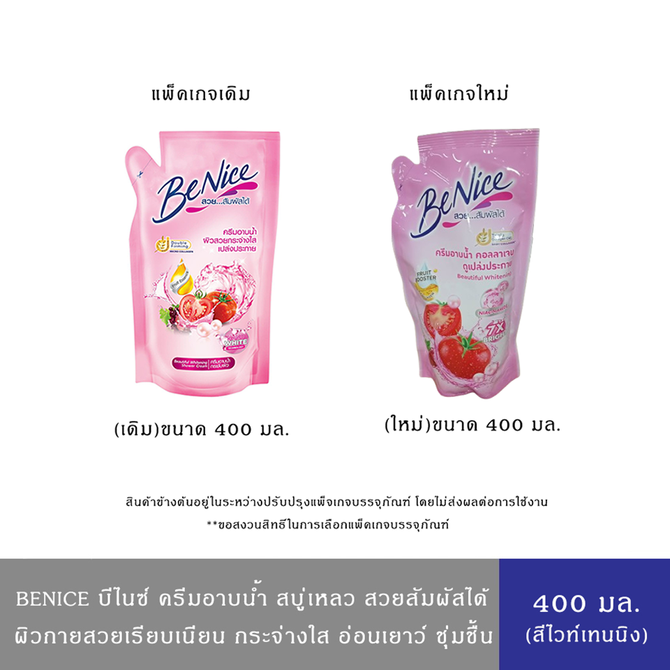 Benice บีไนซ์ สบู่เหลว ครีมอาบน้ำ แอนตี้แบค (สีเขียว,ชมพู,แดง,ขาวชมพู) ถุงเติม 400 มล. **BeNice Shower Cream Mystic White 400ml (Refill)
