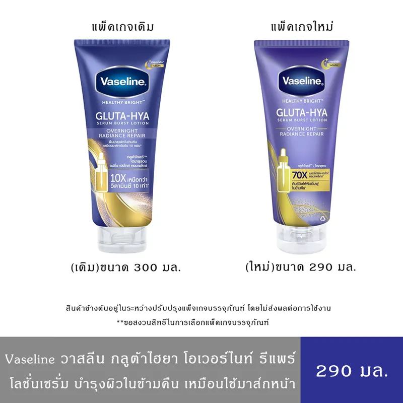 • วาสลีน เฮลธี ไบรท์ กลูต้า-ไฮยา เซรั่ม เบิสท์ โลชั่น โอเวอร์ไนท์ เรเดียนซ์ รีแพร์ หลอดสีม่วง