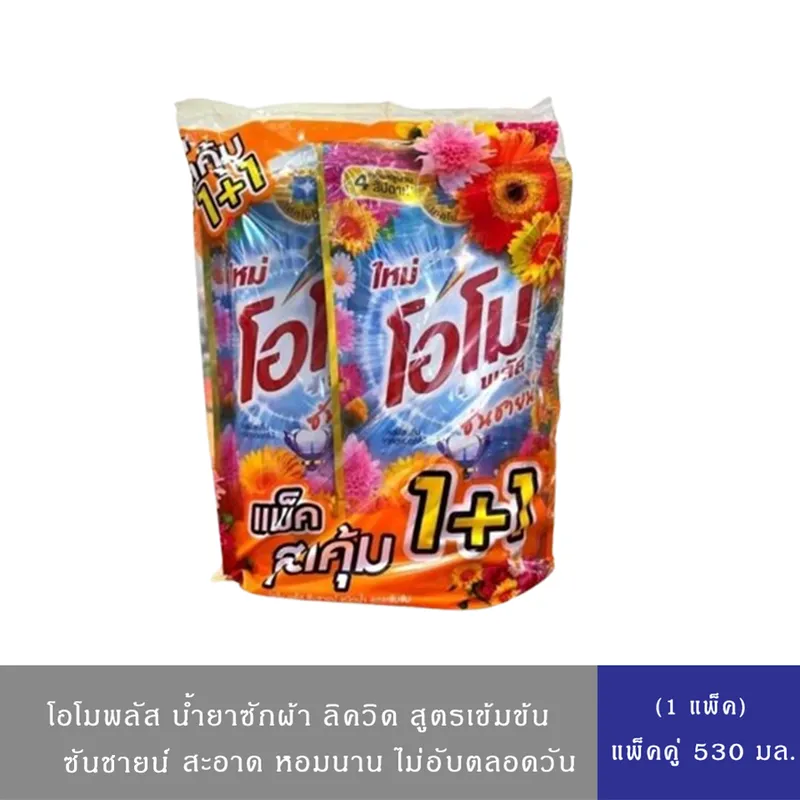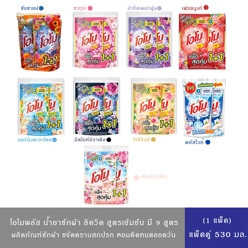 (มีให้เลือก 9 สูตร) โอโมพลัส น้ำยาซักผ้า สูตรเข้มข้น Omo Liquid Detergent แพ็คคู่ 530 มล.+530มล.