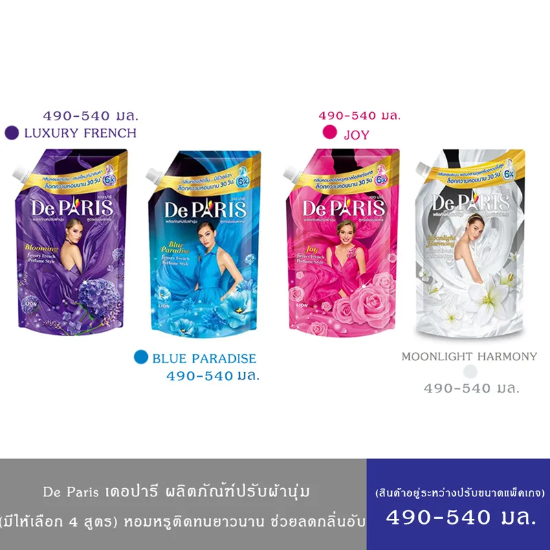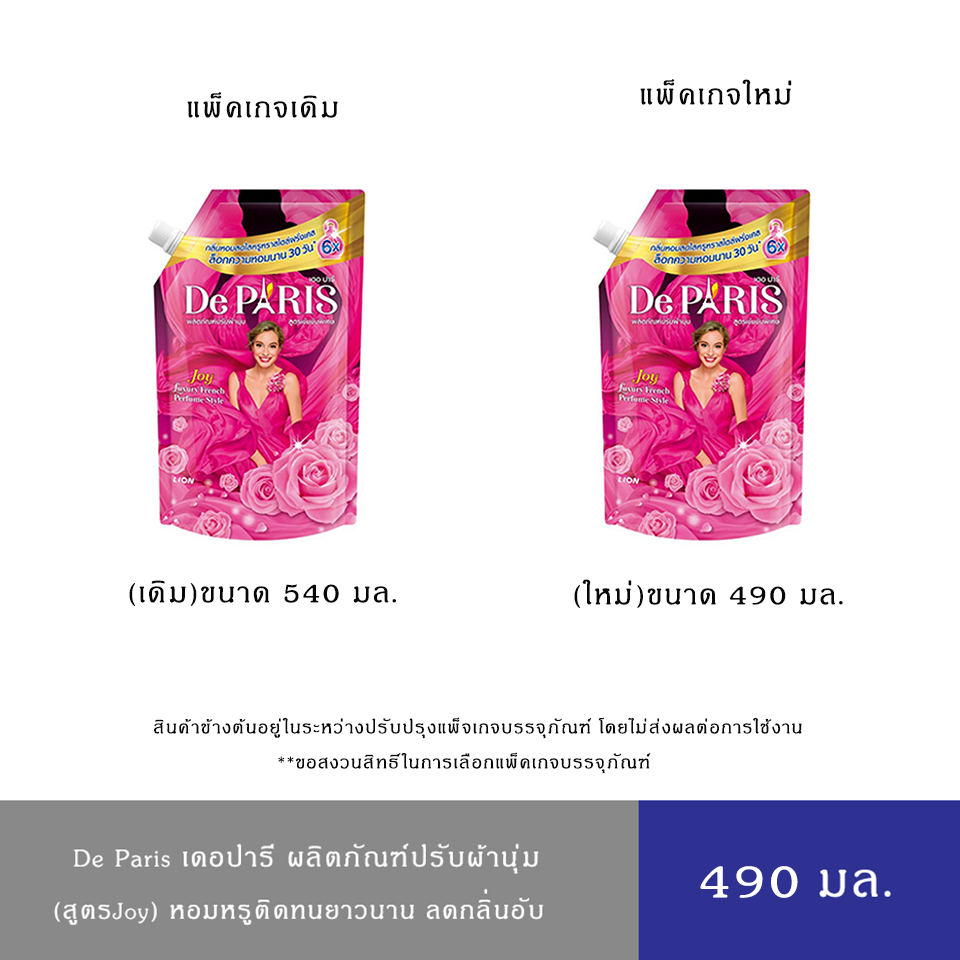 De Paris ผลิตภัณฑ์ ปรับผ้านุ่ม เดอ ปารี สูตร Joy กลิ่นหอมสดใสหรูหรา สร้างชีวิตชีวา ชนิดถุงเติม 540 มล.