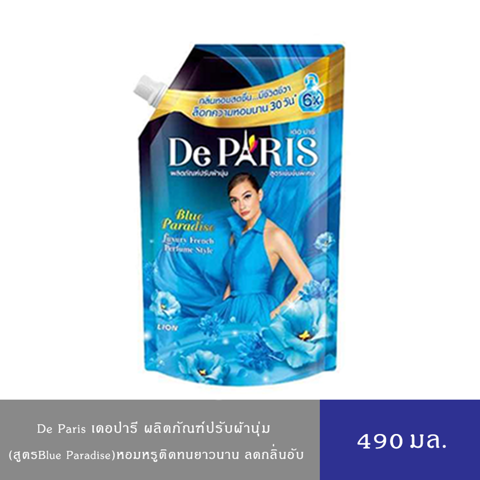 De Paris ผลิตภัณฑ์ ปรับผ้านุ่ม เดอ ปารี สูตร BLUE PARADISE กลิ่นหอมสดชื่น ชนิดถุงเติม 540 มล.