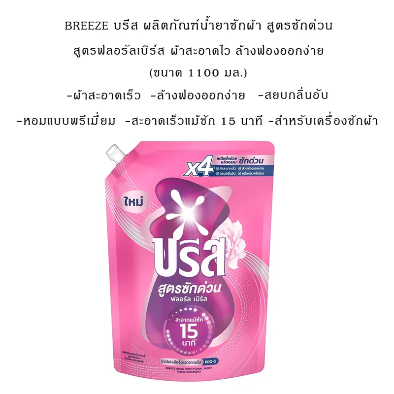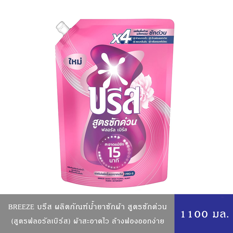 1.บรีส น้ำยาซักผ้าสูตรซักด่วน ฟลอรัล เบิร์ส สำหรับเครื่องซักผ้า ขนาด 1100 มล.