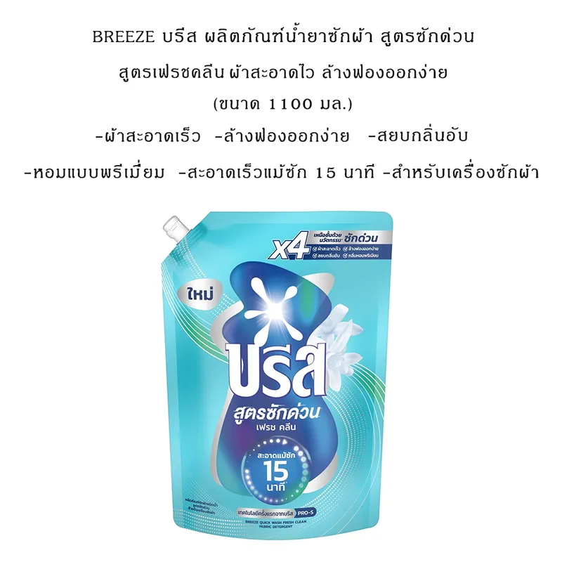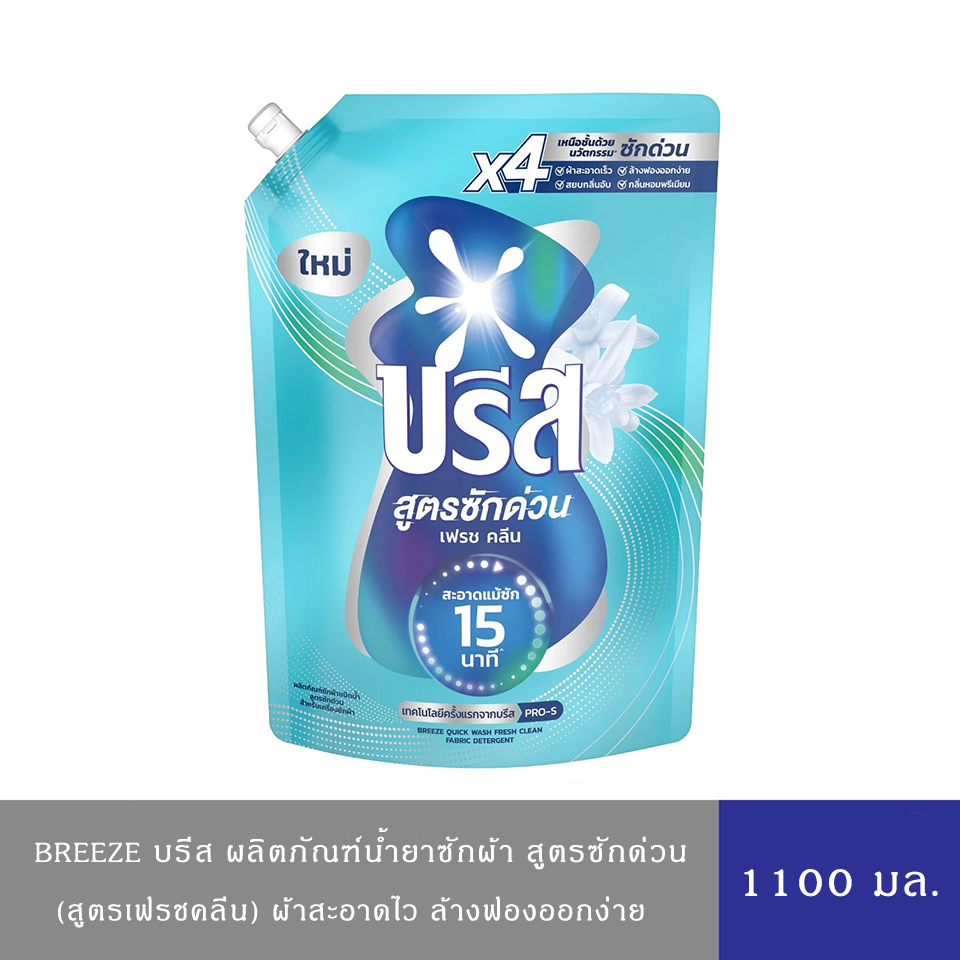(มีให้เลือก 2 สูตร)Breeze บรีส ผลิตภัณฑ์น้ำยาซักผ้า สูตรซักด่วน สำหรับเครื่องซักผ้า ขนาด 1100 มล.