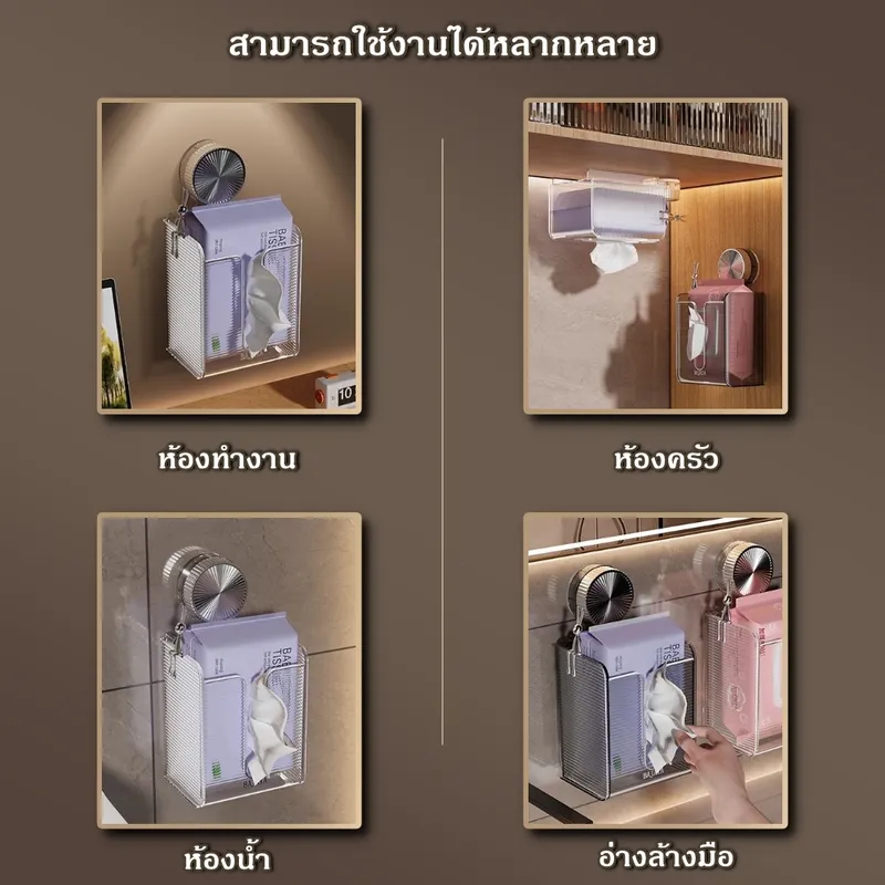 • การรับน้ำหนัก: รองรับการใช้งานทั่วไปกับซองทิชชู่/ของใช้จุกจิก (แนะนำไม่วางของหนักเกินความจำเป็น)