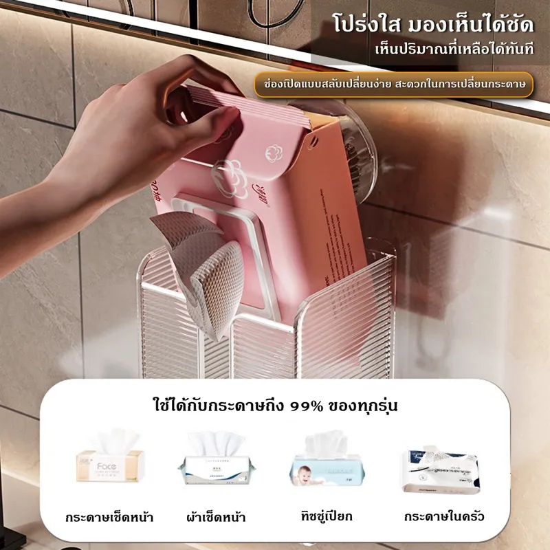 • กล่องใส่ทิชชู่ ติดตั้งได้ทันที ไม่ต้องเจาะผนัง