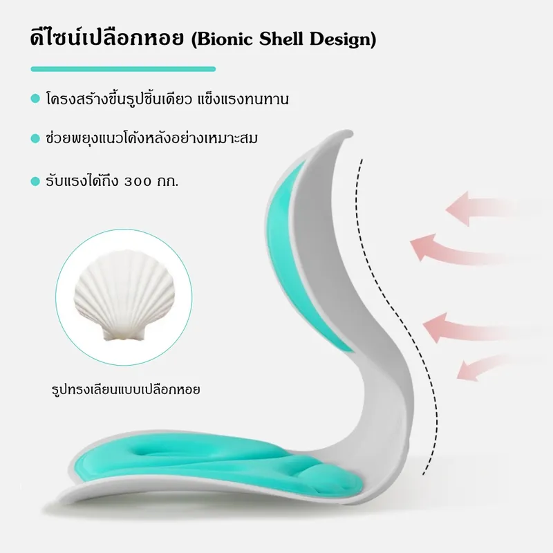 ● ดีไซน์เปลือกหอย (Bionic Shell Design) รองรับน้ำหนักได้ถึง 300 กิโลกรัม
