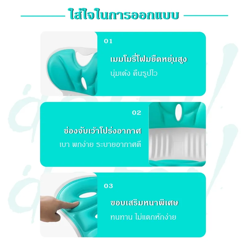 เบาะรองนั่งพยุงหลังเพื่อสุขภาพ (Ergonomic Posture Support Cushion) ช่วยพยุงแนวกระดูกสันหลังให้ตรง ลดแรงกดจากการนั่งนาน ปรับสรีระให้นั่งได้อย่างเป็นธรรมชาติ ไม่ปวดหลัง ไม่เมื่อยเอว