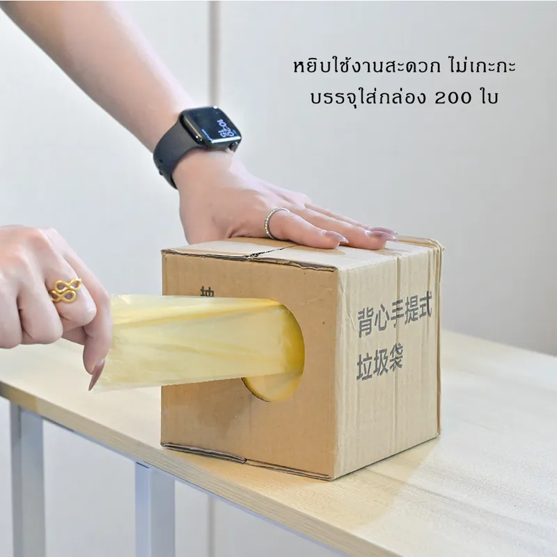 -(มีให้เลือก3สี)ถุงใส่ขยะ มีหูหิ้ว รับน้ำหนักได้ดี ไม่รั่วซึมง่าย เนื้อเหนียว กล่อง200ชิ้น