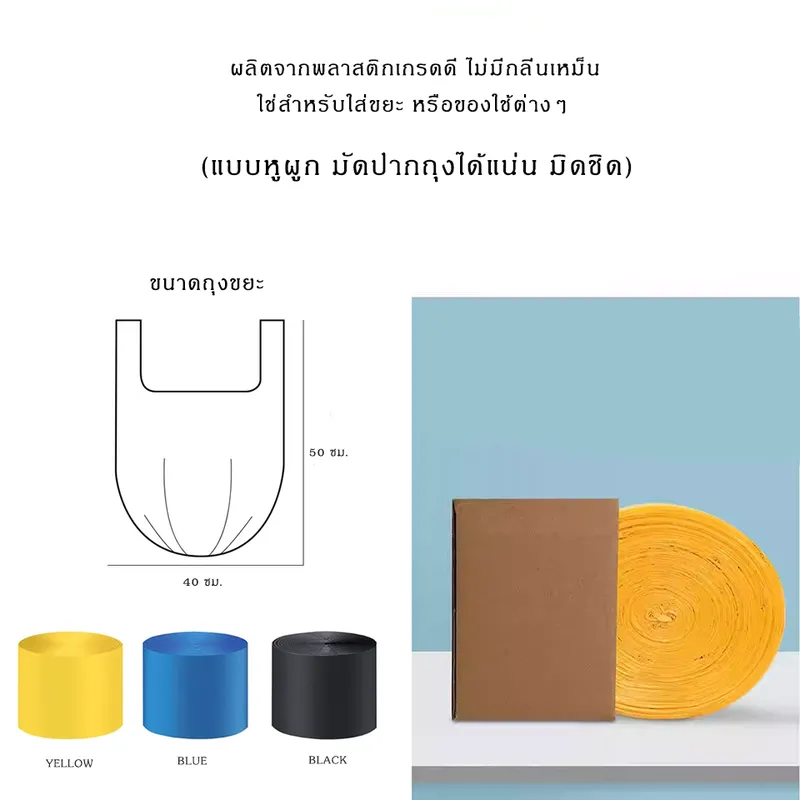 (มีให้เลือก3สี)ถุงใส่ขยะ มีหูหิ้ว รับน้ำหนักได้ดี ไม่รั่วซึมง่าย เนื้อเหนียว กล่อง200ชิ้น ขนาด40*50ซม.