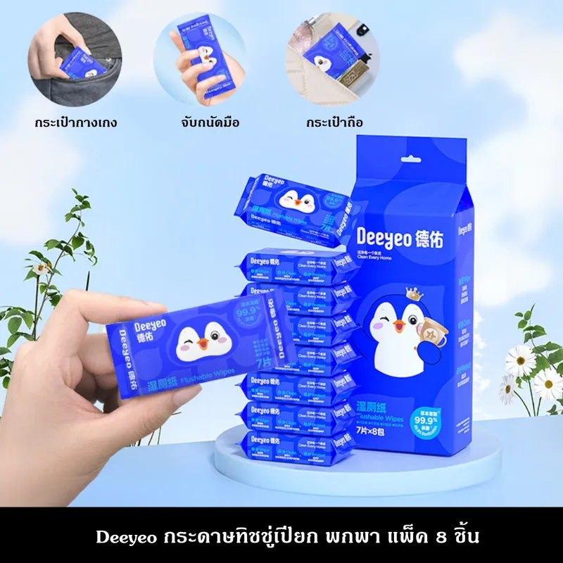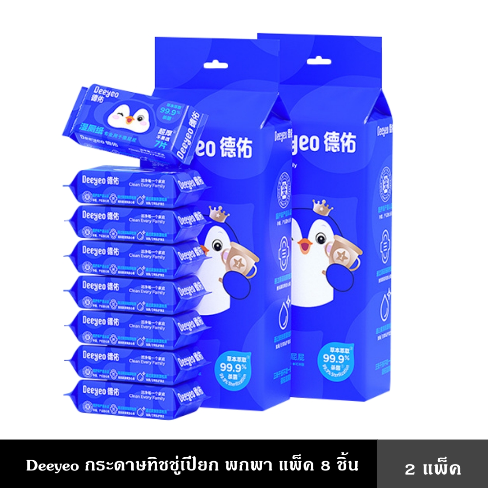 - Deeyeo กระดาษทิชชู่เปียก พกพา แพ็ค 8 ชิ้น ขนาดเล็ก