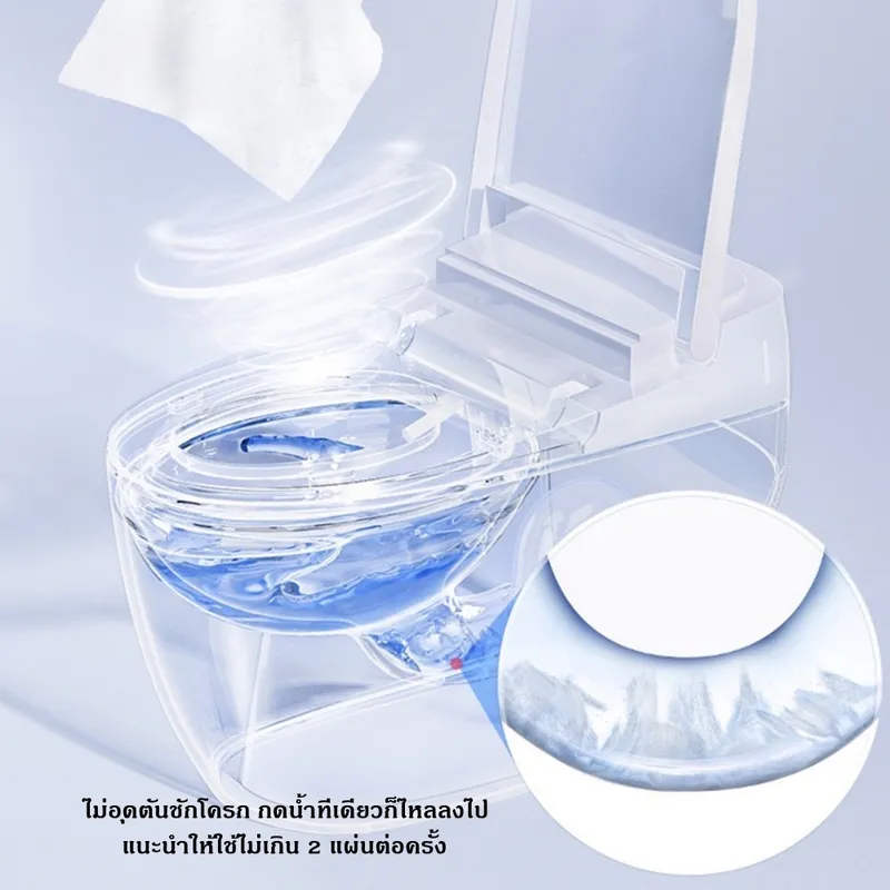 - ไม่อุดตันชักโครก กดน้ำทีเดียวก็ไหลลงไป แนะนำให้ใช้ไม่เกิน 2 แผ่นต่อครั้ง