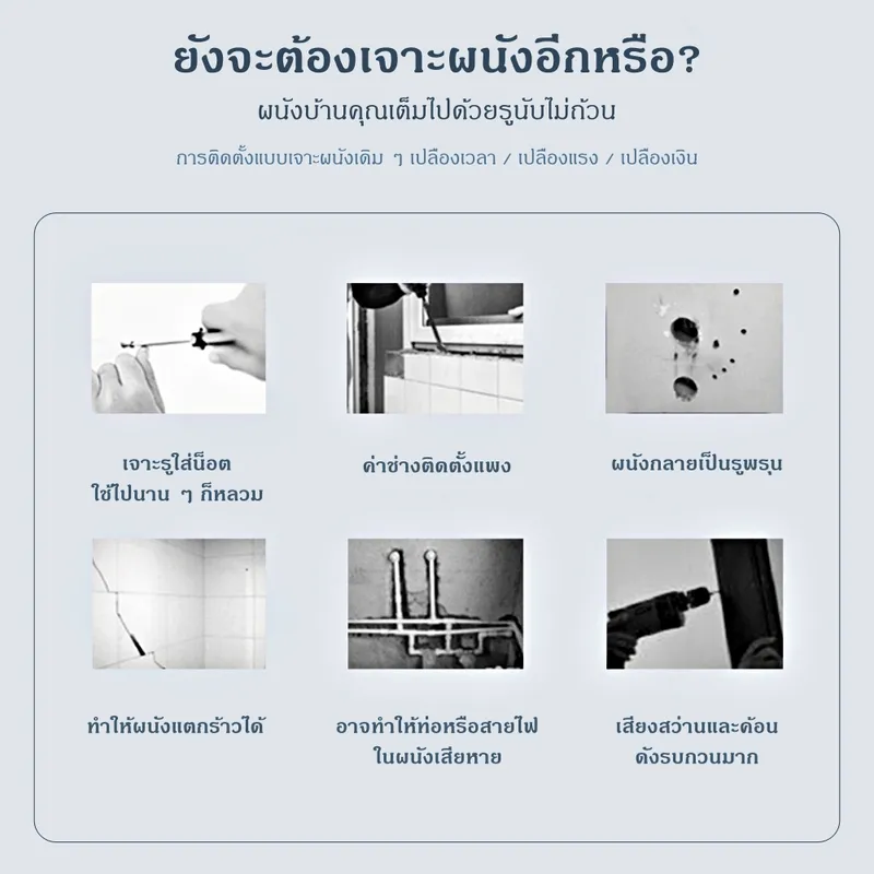 • ไม่ต้องเจาะผนัง