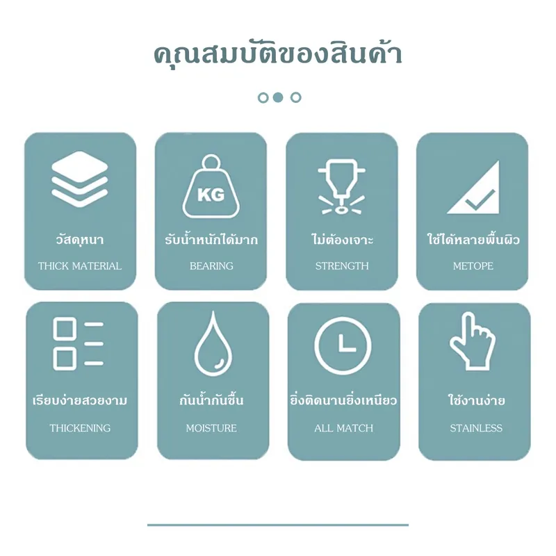• พื้นผิวที่ติดได้ : กระเบื้อง / หินอ่อน / กระจก / ไม้เคลือบพลาสติก / สเตนเลส