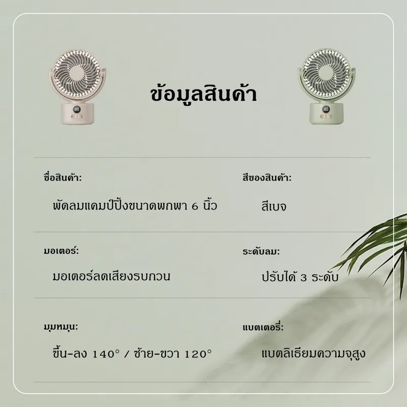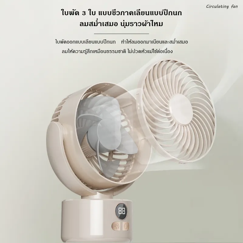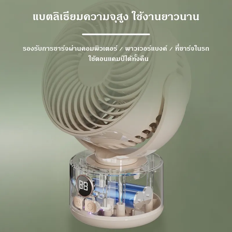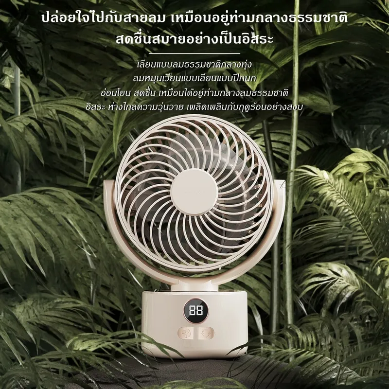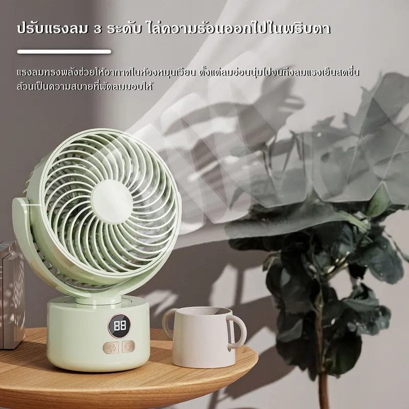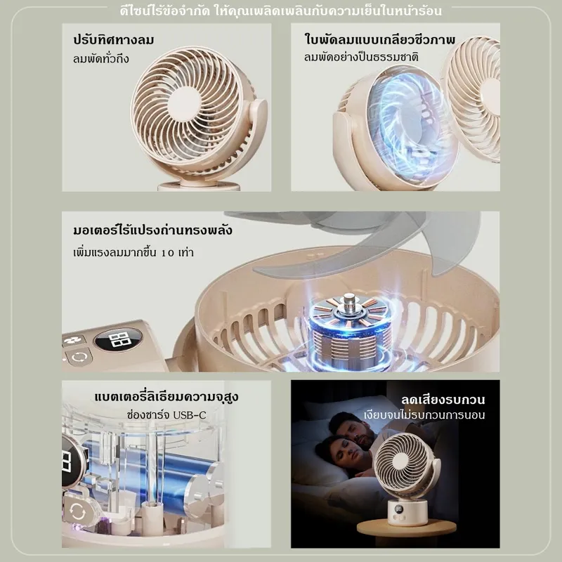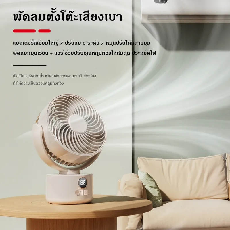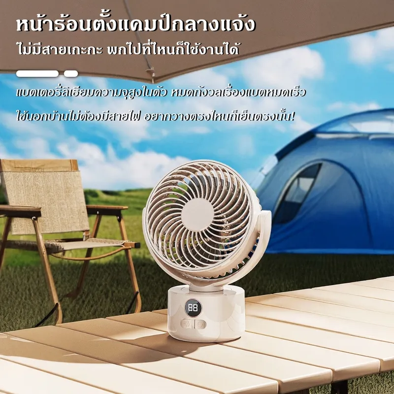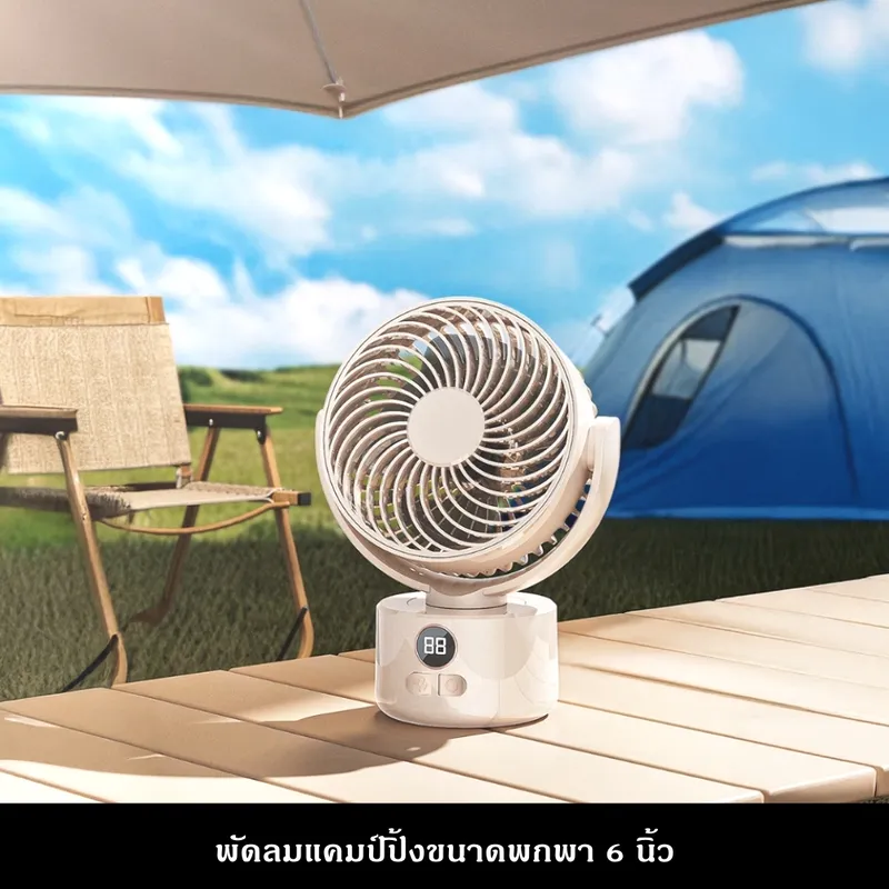 เพิ่มความเย็นสบายให้ทุกมุมบ้านและการตั้งแคมป์ ด้วยพัดลมหมุนเวียนอากาศดีไซน์ทันสมัย พร้อมแรงลมทรงพลังและระบบลดเสียงรบกวน ให้ความเย็นสบายแบบธรรมชาติทุกช่วงเวลา