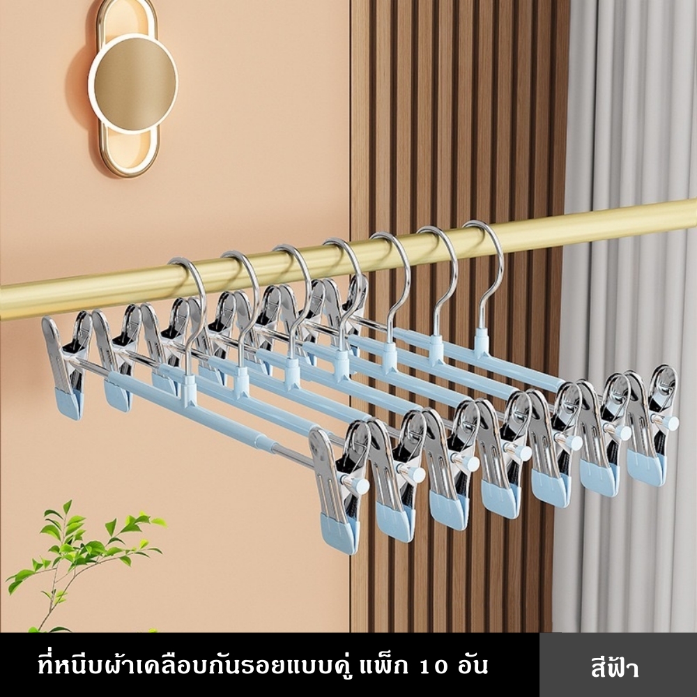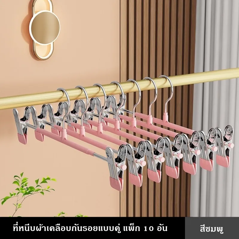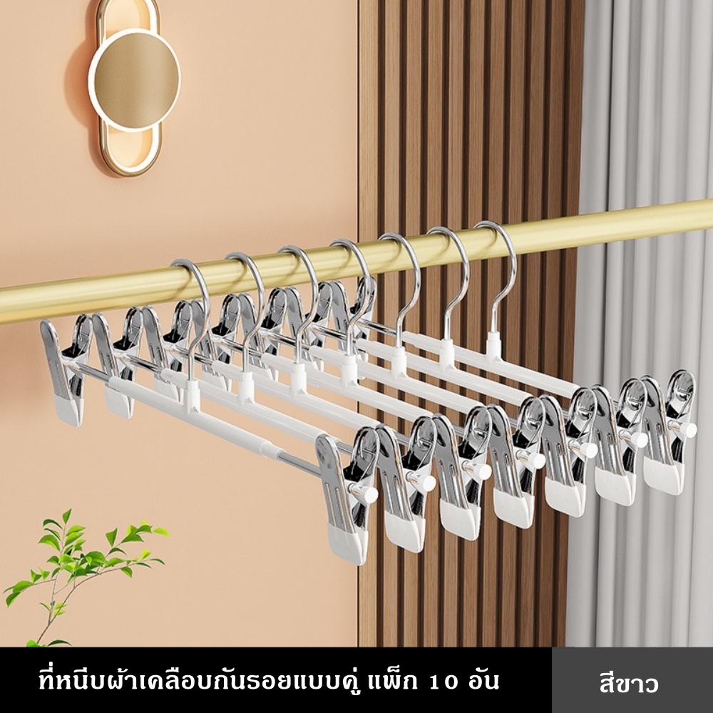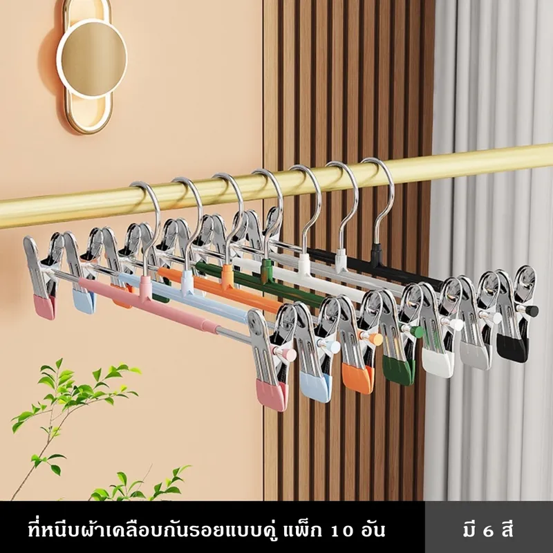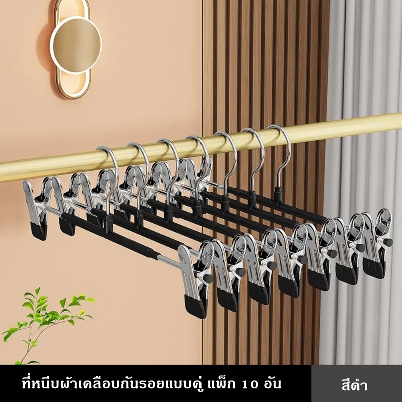 ที่หนีบผ้าเคลือบกันรอยคุณภาพสูง ออกแบบมาเพื่อช่วยให้การจัดเก็บเสื้อผ้าเป็นเรื่องง่าย ตัวคลิปหนีบเคลือบยางนุ่ม ช่วยป้องกันรอยกดบนเนื้อผ้า พร้อมแรงหนีบที่แน่นเป็นพิเศษ ทำให้เสื้อผ้าไม่หลุดแม้โดนลมหรือการเคลื่อนไหวแข็งแรง รองรับน้ำหนักได้ดี ใช้งานได้ทั้งภายในบ้านและกลางแจ้ง ไม่ต้องกังวลเรื่องสนิมหรือความชื้น ตัวหนีบสามารถเลื่อนปรับตำแหน่งได้ เหมาะกับเสื้อผ้าหลากหลายประเภท เช่น กางเกง กระโปรง หรือผ้าชิ้นเล็ก ช่วยเพิ่มพื้นที่ในตู้เสื้อผ้าได้อย่างมีประสิทธิภาพที่หนีบผ้าแบบคู่พร้อมตะขอ จัดเก็บเป็นระเบียบ ประหยัดพื้นที่