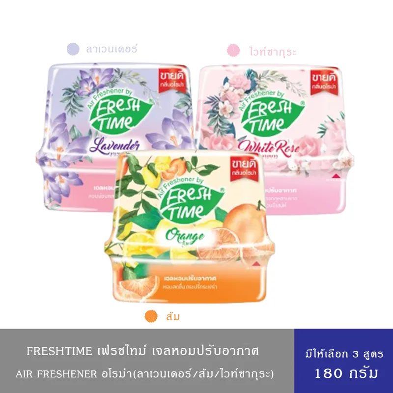 (มีให้เลือก 3 สูตร)Freshtime เฟรชไทม์ เจลหอมปรับอากาศ หอมสดชื่น กลิ่นส้ม,ลาวนเดอร์,ไวท์โรส