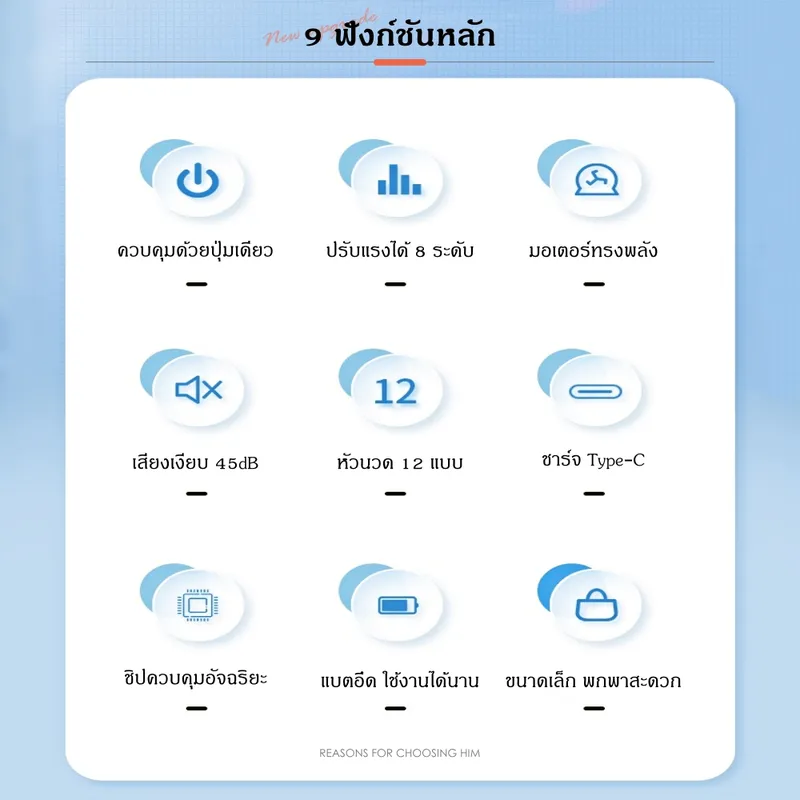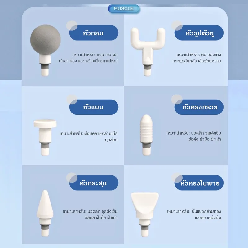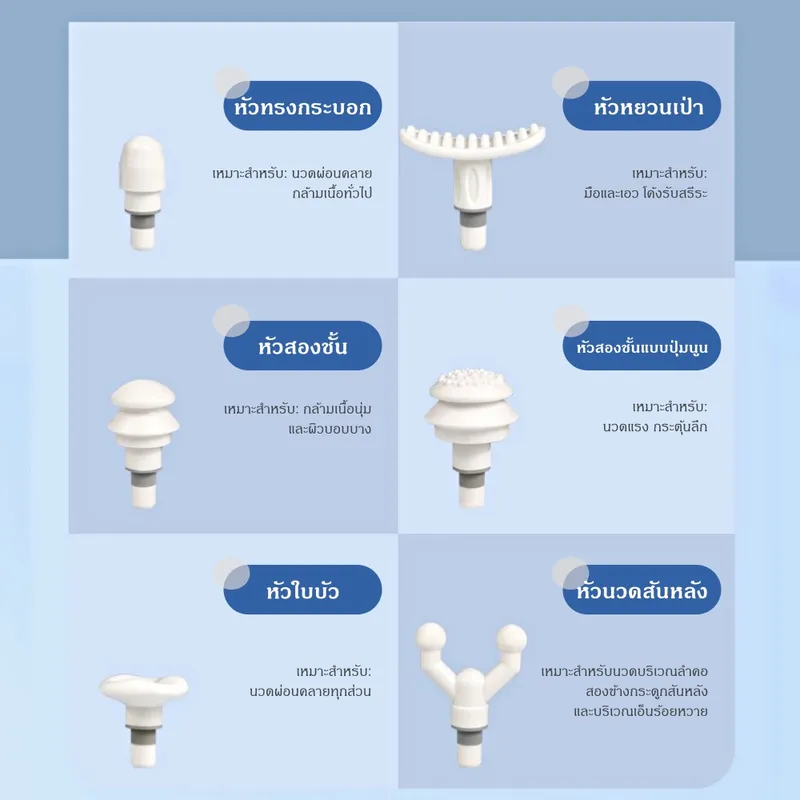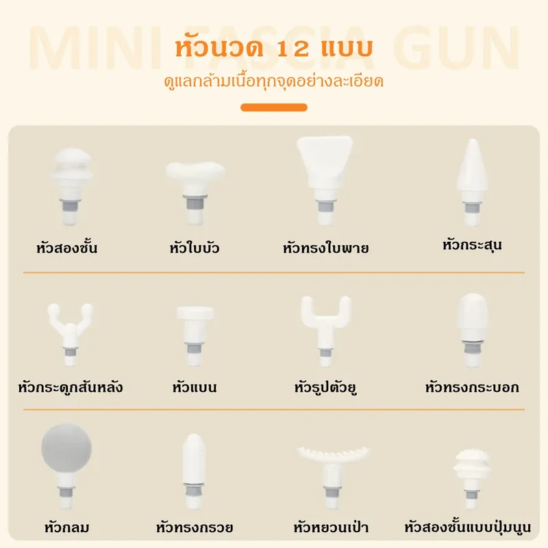 • หัวนวด 12 แบบ ครอบคลุมทุกส่วนของร่างกาย