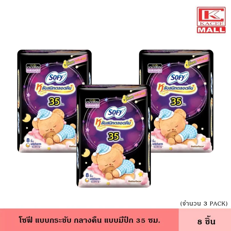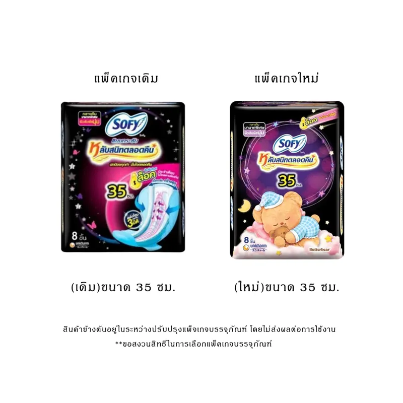 -โซฟีแบบกระชับ กลางคืน 35 ซม. 8 ชิ้น ปกป้องได้มั่นใจยาวนานตลอดทั้งคืน ไม่ซึมเปื้อนด้านข้าง จึงทำให้คุณหลับสนิทตลอดทั้งคืน