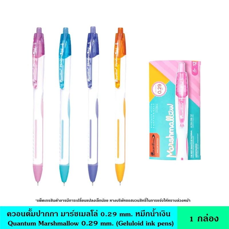 Quantum ควอนตั้ม ปากกา มาร์ชเมลโล่ 0.29 mm. หมึกน้ำเงิน คละสี (BX) ปากกาเจล ปากกาลูกลื่น หัว 0.29 มม. ด้ามจับยางนุ่ม ลายเล้นบางเฉียบ คมชัด Marshmallow