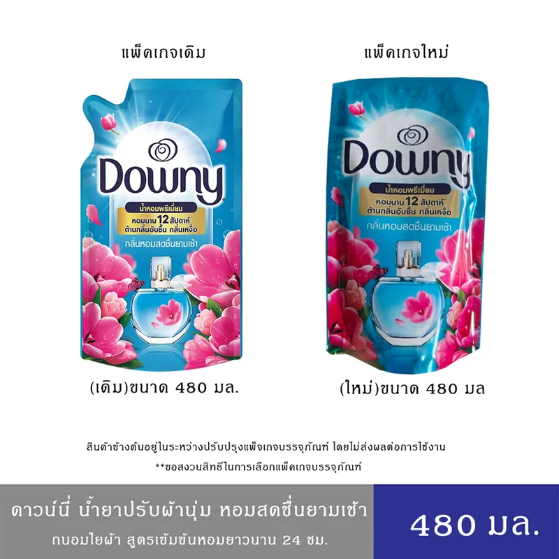 (อยู่ระหว่างปรับแพ็คเกจ)Downy น้ำยาปรับผ้านุ่ม ดาวน์นี่ กลิ่นหอมสดชื่นยาวเช้า ป้องกันกลิ่นไม่พึงประสงค์ ถนอมใยผ้า ถุงเติม 480 มล.
