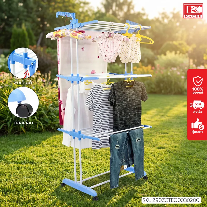 ประโยชน์อเนกประสงค์ มีสามชั้น สามารถตากรองเท้าได้ แขวนเสื้อผ้า วางผ้าขนหนู, กระเป๋าฯลฯ