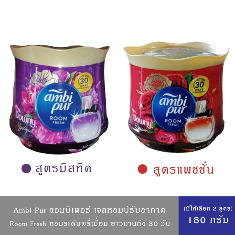 (2 กลิ่น)Ambi Pur แอมบิเพอร์ เจลหอมปรับอากาศ กลิ่นมิสทิค,แพชชั่น ขนาด180 กรัม เปลี่ยนบรรยากาศด้วยกลิ่นหอมของมวลพฤกษาและผลไม้นานาพันธุ์ ให้คุณและครอบครัวได้ดื่มด่ำไปกับกลิ่นความหอมของน้ำหอมพรีเมียมระดับโลกจากดาวน์นี่ ผ่านผลิตภัณฑ์เจลหอมปรับอากาศของแอมบิเพอร์