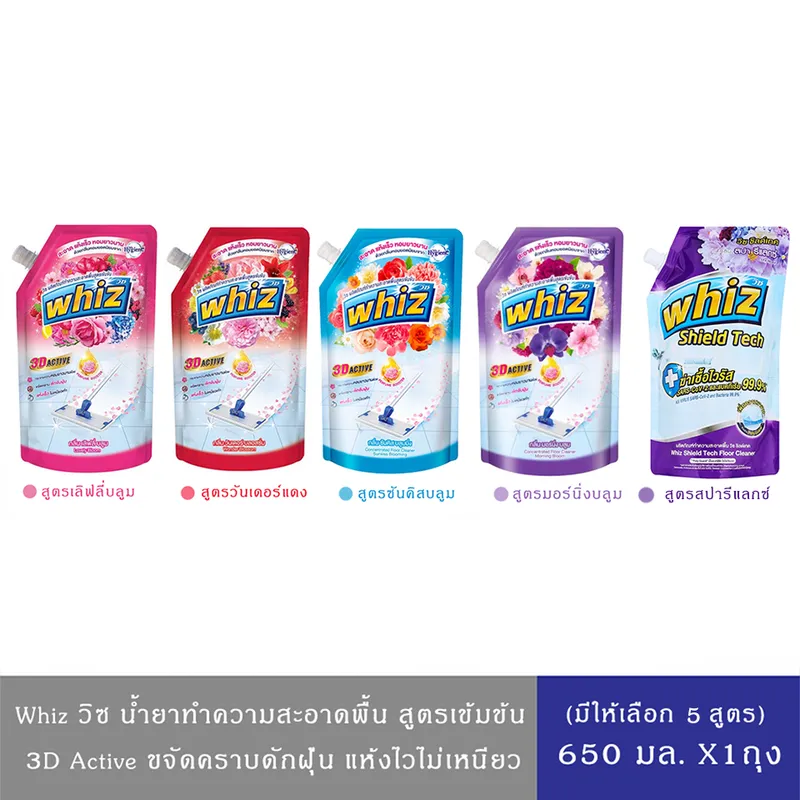 (มีให้เลือก 5สูตร)Whiz วิซ 3D แอคทีฟ ผลิตภัณฑ์ทำความสะอาดพื้น สูตรเข้มข้น ขจัดคราบสกปรก แห้งเร็ว 650 มล.