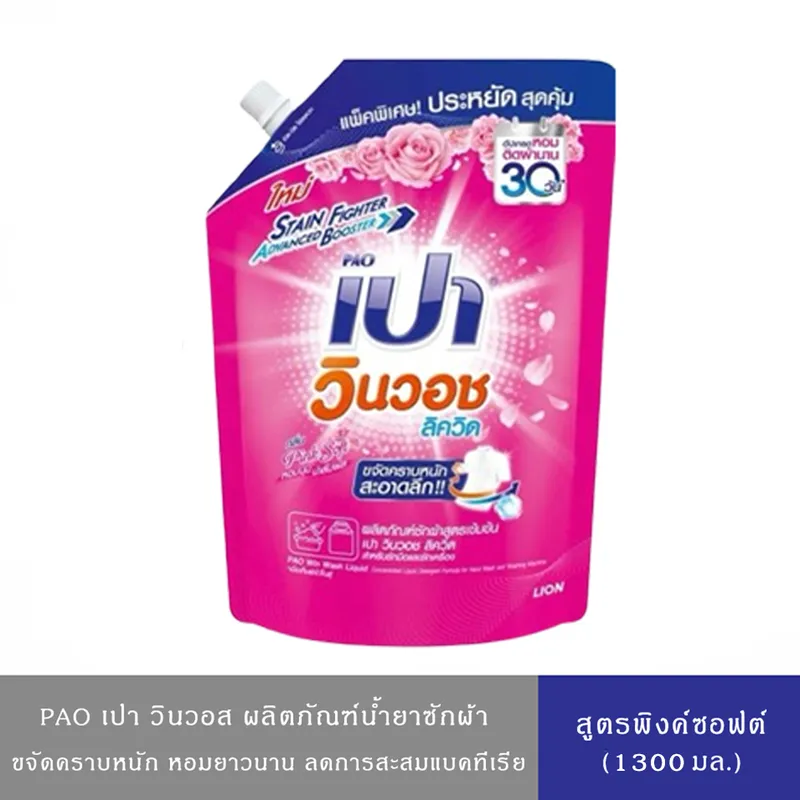 1.เปา วินวอช ลิควิด กลิ่นพิ้งค์ซอฟท์ 1,500 มล. สำหรับซักมือและเครื่อง ขจัดคราบลึก - มีสารทำความสะอาดเข้มข้น ช่วยขจัดควาบ สะอาดได้ถึงเส้นใย