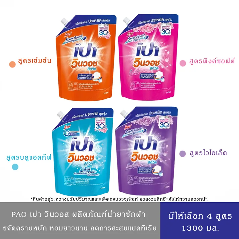 -(มีให้เลือก 4สูตร)PAO Win Wash Liquid เปา วินวอช น้ำยาซักผ้า ลิควิด ทำความสะอาดคราบหนักบนเสื้อผ้า หอมสะอาดถึงเส้นใย 1300