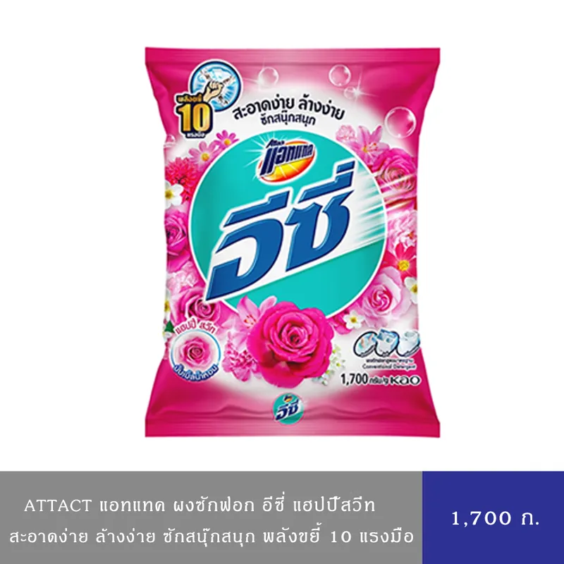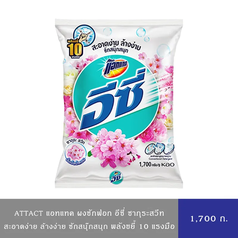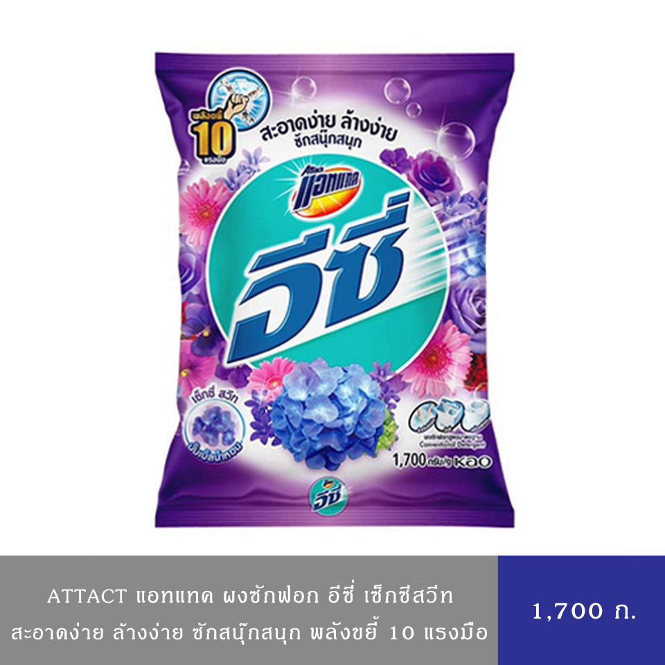 (มีให้เลือก 4 สูตร)Attack แอทแทค อีซี่ ผงซักฟอก พลังขยี้10แรงมือ สะอาดง่าย ขนาด 1,600-1,700 กรัม