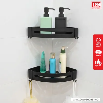 ชั้นวางของเข้ามุมในห้องน้ำ ห้องครัว อลูมิเนียมสีดำ รุ่น Aluminum Black Series