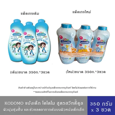 Kodomo แป้งเด็ก โคโดโม อ่อนโยนต่อทารกผิวบอบบาง สูตรเจนเทิลซอฟท์(ชมพู),เอ็กซ์ตร้ามายด์(ฟ้า),สวีทตี้คูล(น้ำเงิน),เนเชอรัล(ส้ม) 350ก.แพ็ค2+1 ขวด