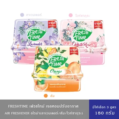 (มีให้เลือก 3 สูตร)Freshtime เฟรชไทม์ เจลหอมปรับอากาศ หอมสดชื่น กลิ่นส้ม,ลาวนเดอร์,ไวท์โรส 180 ก.