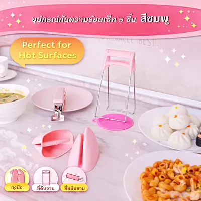 อุปกรณ์กันความร้อน สแตนเลส ซิลิโคน คีบแน่น ไม่ลื่น ใช้งานง่าย หมุนได้ 180° จับถนัดมือ เซ็ท5ชิ้น