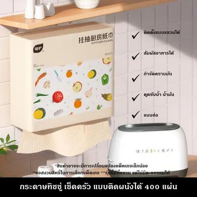 กระดาษทิชชู่ เช็ดครัว แบบติดผนังได้ 400 แผ่น มีที่แขวน ออกแบบมาสำหรับห้องครัว ดูดซับน้ำ น้ำมัน คราบไขมัน ผลิตจากเยื่อไผ่บริสุทธิ์ ปลอดภัยสำหรับการสัมผัสอาหาร