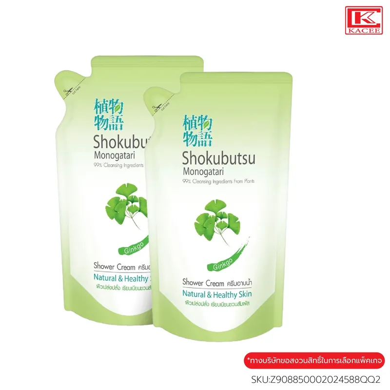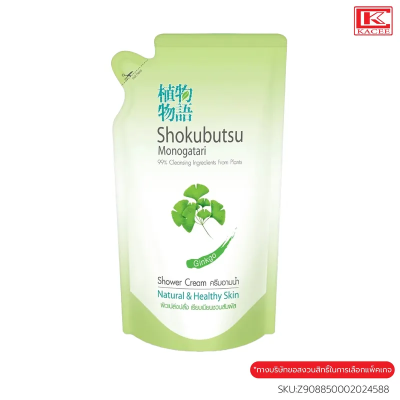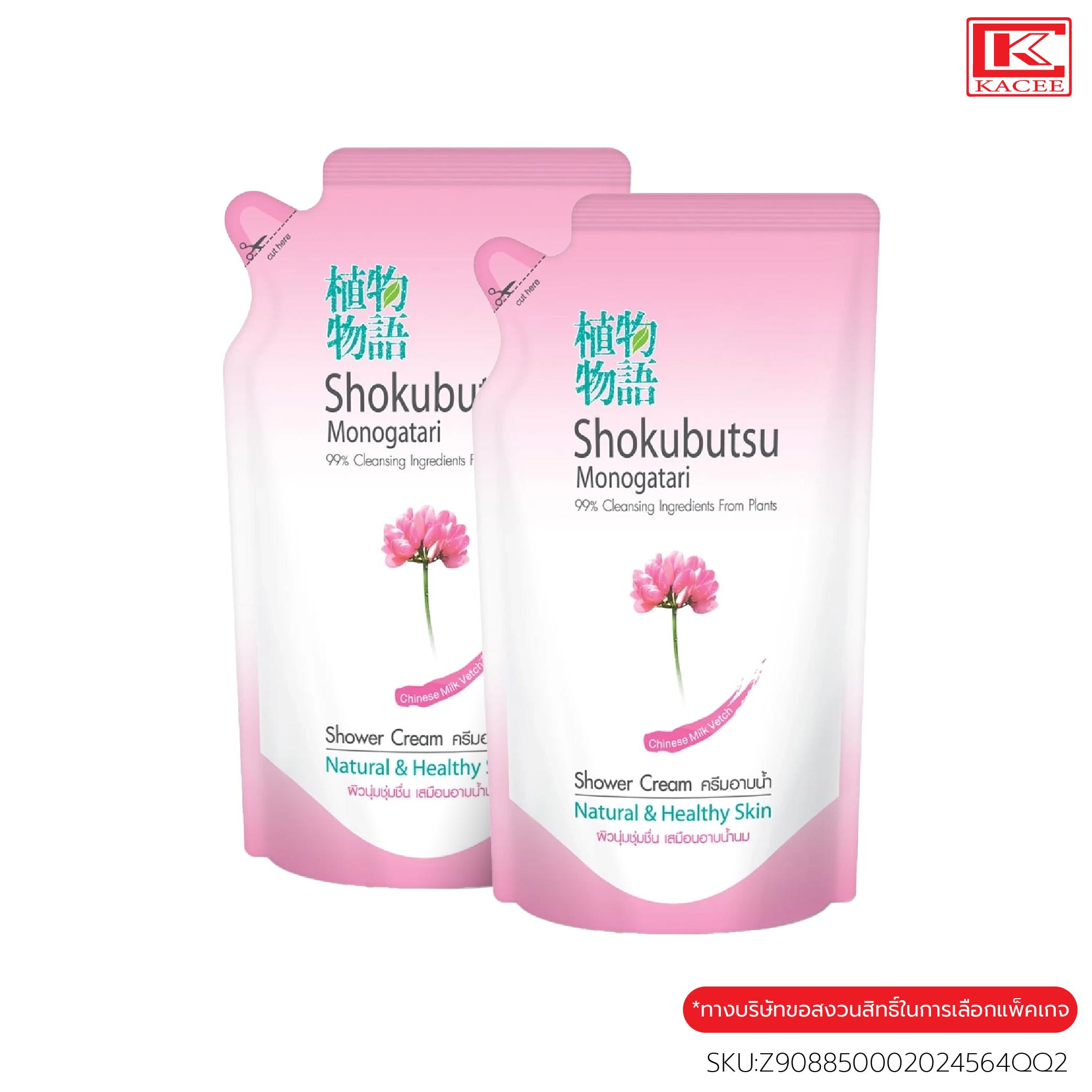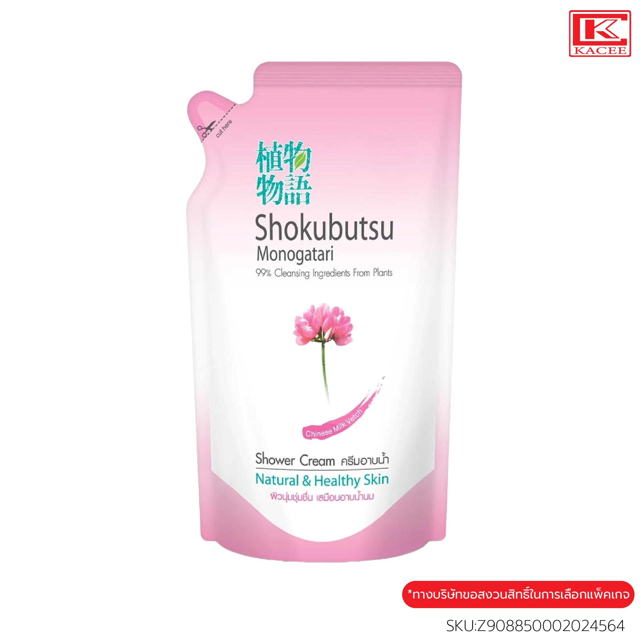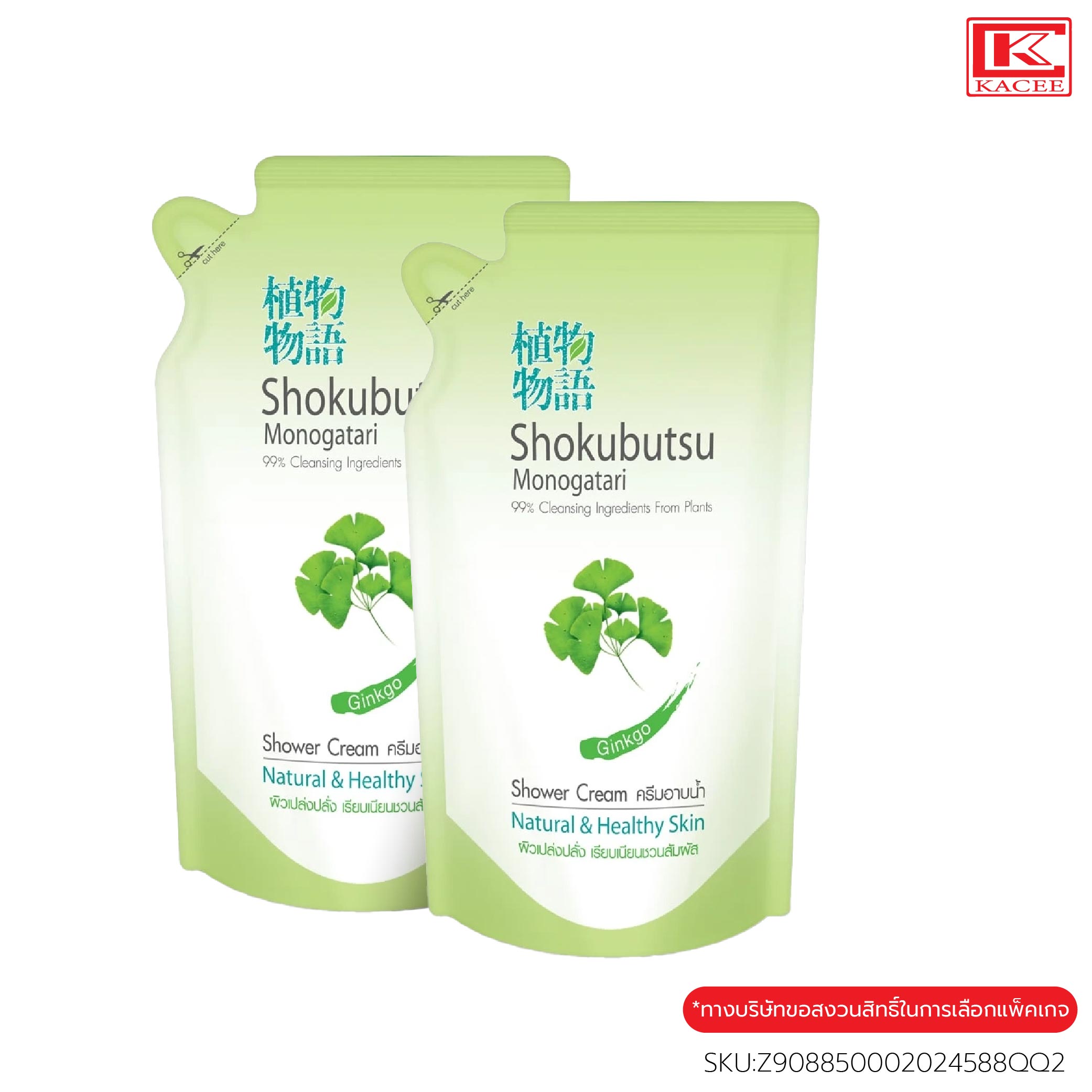 Shokubutsu Monogatari โชกุบุสซึ ครีมอาบน้ำ สูตรผิวเปล่งปลั่งเรียบเนียนชวนสัมผัส สีเขียว ถุงเติม 500 มล.