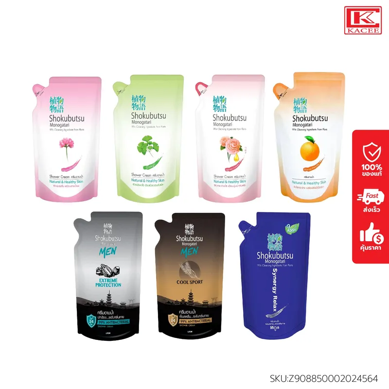 (อยู่ระหว่างปรับขนาดบรรจุภัณฑ์)Shokubutsu Monogatari โชกุบุสซึ ครีมอาบน้ำ สบู่เหลว ถุงเติม 500 มล.(สูตรเจแปนนิสคาเมลเลีย,สีเขียว,สีชมพู,สีเทา,สีน้ำเงิน,สีดำ,สีส้ม)