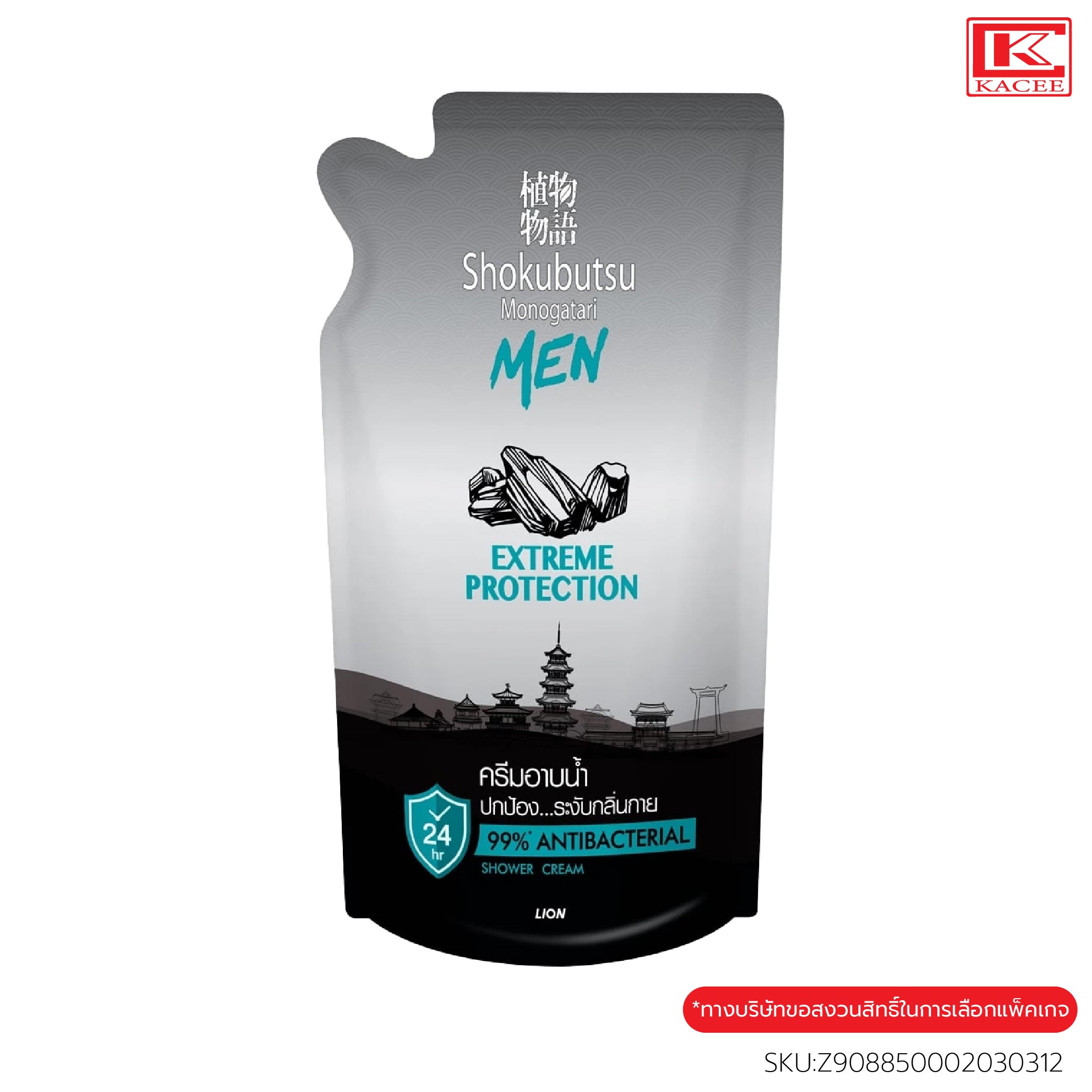Shokubutsu โชกุบุสซึ โมโนกาตาริ ครีมอาบน้ำ สูตรเอกซ์ตรีมโพรเทค ลดแบคทีเรีย สำหรับผู้ชาย 500 มล.(ถุงเติม) Extreme Protection 500 ml.