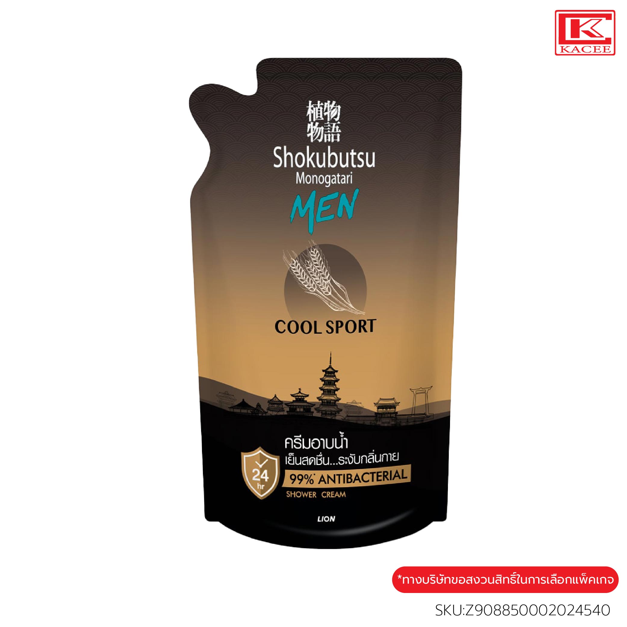 SHOKUBUTSU ครีมอาบน้ำ โชกุบุสซึ โมโนกาตาริ สูตรเย็นสดชื่น ระงับกลิ่นกาย (Cool Sport สีดำ) ชนิดถุงเติม 500 มล.