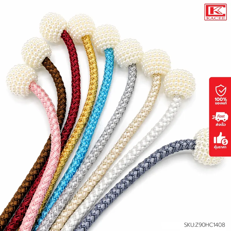 ส่วนบริเวณหัวสายรวบม่านนั้นประดับด้วยมุกล้อมรอบ โดยมีแม่เหล็กเป็นตัวกลาง ช่วยในการดึงดูดรวบเก็บผ้าม่านได้อย่างง่ายดาย