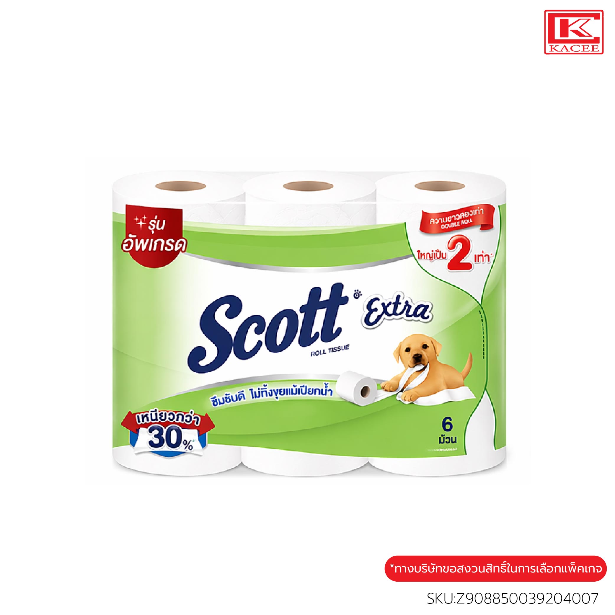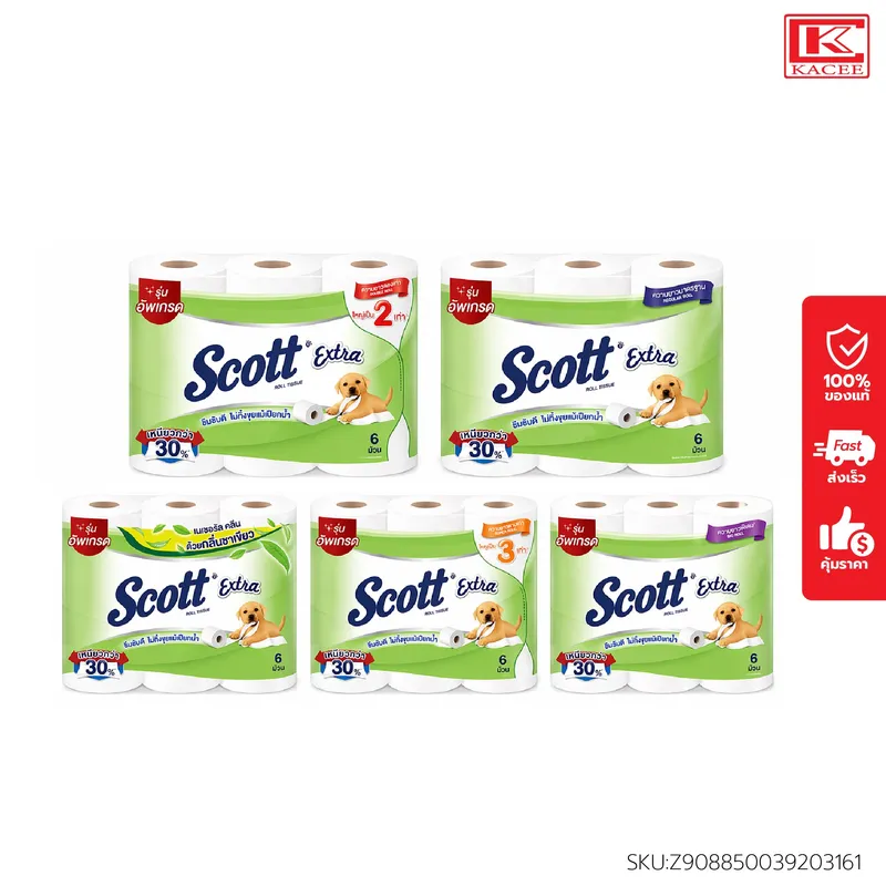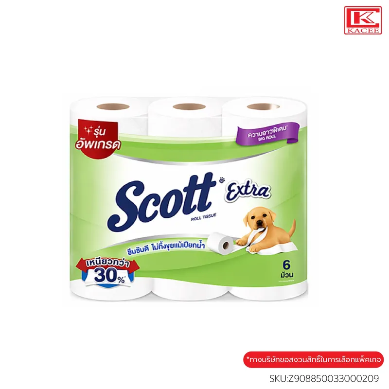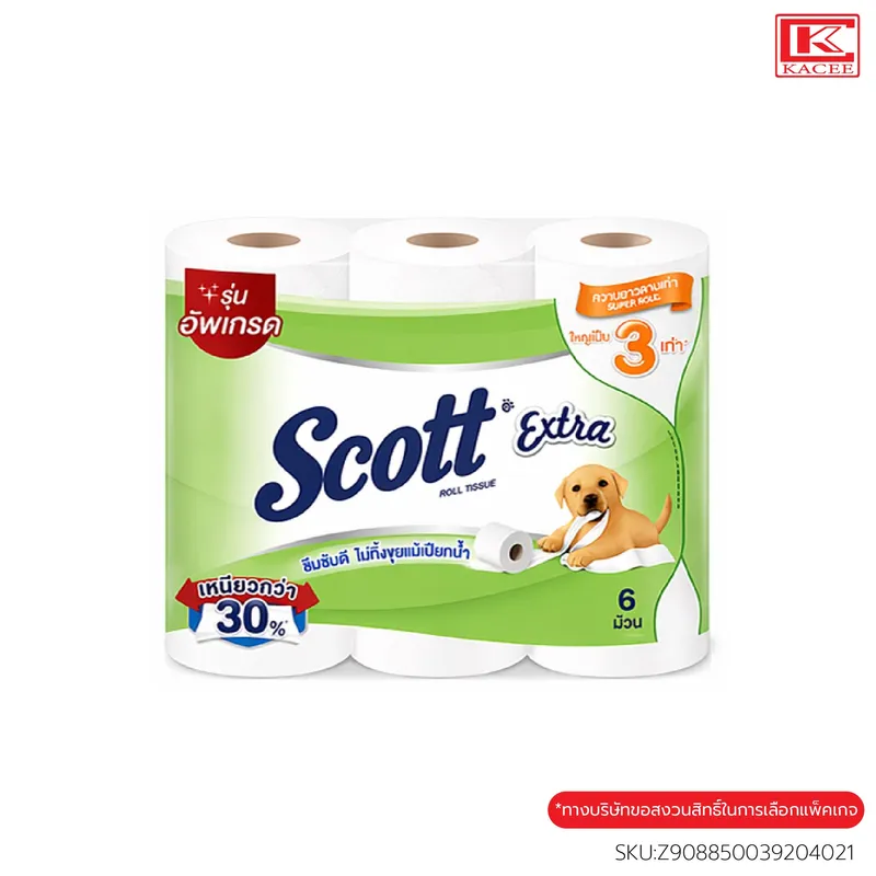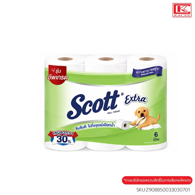 สก๊อตต์ เอ็กซ์ตร้า คือกระดาษชำระหนา 2 ชั้น มีเนื้อกระดาษที่เหนียว นุ่ม ซึมซับดีเยี่ยม ไม่ทิ้งขุยแม้เปียกน้ำ ความยาวมาตรฐาน